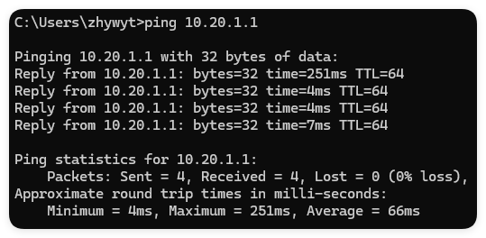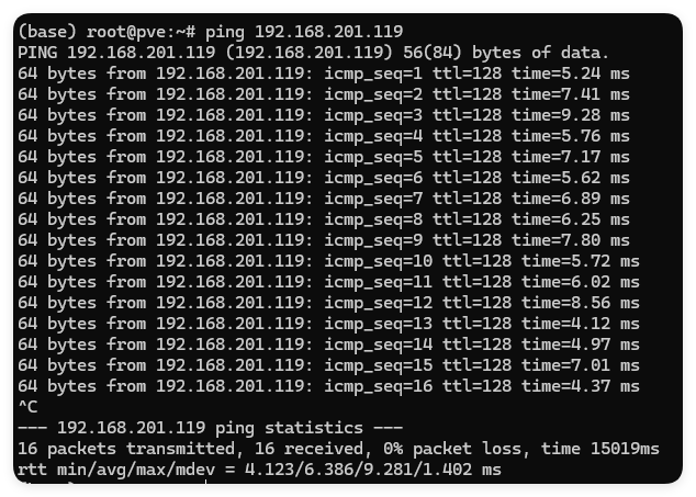我们打开一个终端,使用ping命令来测试我们的连通性: