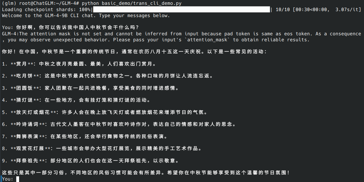 | (base) root@ChatGLM:~/GLM-4# git diff basic_demo/trans_web_demo.py diff --git a/basic_demo/trans_web_demo.py b/basic_demo/trans_web_demo.py diff --git a/basic_demo/trans_web_demo.py b/basic_demo/trans_web_demo.py index 1a470de..a85b4bd 100644 --- a/basic_demo/trans_web_demo.py +++ b/basic_demo/trans_web_demo.py @@ -21,7 +21,9 @@ from transformers import ( PreTrainedTokenizerFast, StoppingCriteria, StoppingCriteriaList, - TextIteratorStreamer + TextIteratorStreamer, + AutoModel, + BitsAndBytesConfig ) ModelType = Union[PreTrainedModel, PeftModelForCausalLM] @@ -35,27 +37,44 @@ def _resolve_path(path: Union[str, Path]) -> Path: return Path(path).expanduser().resolve() -def load_model_and_tokenizer( - model_dir: Union[str, Path], trust_remote_code: bool = True -) -> tuple[ModelType, TokenizerType]: - model_dir = _resolve_path(model_dir) - if (model_dir / 'adapter_config.json').exists(): - model = AutoPeftModelForCausalLM.from_pretrained( - model_dir, trust_remote_code=trust_remote_code, device_map='auto' - ) - tokenizer_dir = model.peft_config['default'].base_model_name_or_path - else: - model = AutoModelForCausalLM.from_pretrained( - model_dir, trust_remote_code=trust_remote_code, device_map='auto' - ) - tokenizer_dir = model_dir - tokenizer = AutoTokenizer.from_pretrained( - tokenizer_dir, trust_remote_code=trust_remote_code, use_fast=False - ) - return model, tokenizer - +#def load_model_and_tokenizer( +# model_dir: Union[str, Path], trust_remote_code: bool = True +#) -> tuple[ModelType, TokenizerType]: +# model_dir = _resolve_path(model_dir) +# if (model_dir / 'adapter_config.json').exists(): +# model = AutoPeftModelForCausalLM.from_pretrained( +# model_dir, trust_remote_code=trust_remote_code, device_map='auto' +# ) +# tokenizer_dir = model.peft_config['default'].base_model_name_or_path +# else: +# model = AutoModelForCausalLM.from_pretrained( +# model_dir, trust_remote_code=trust_remote_code, device_map='auto' +# #model_dir, trust_remote_code=trust_remote_code, device_map='auto', +# #quantization_config=BitsAndBytesConfig(load_in_4bit=True), +# #low_cpu_mem_usage=False, +# ) +# tokenizer_dir = model_dir +# tokenizer = AutoTokenizer.from_pretrained( +# tokenizer_dir, trust_remote_code=trust_remote_code, use_fast=False +# ) +# return model, tokenizer +# +# +#model, tokenizer = load_model_and_tokenizer(MODEL_PATH, trust_remote_code=True) +tokenizer = AutoTokenizer.from_pretrained( + MODEL_PATH, + trust_remote_code=True, + encode_special_tokens=True +) -model, tokenizer = load_model_and_tokenizer(MODEL_PATH, trust_remote_code=True) +model = AutoModel.from_pretrained( + MODEL_PATH, + trust_remote_code=True, + #attn_implementation="flash_attention_2", # Use Flash Attention + quantization_config=BitsAndBytesConfig(load_in_4bit=True), + low_cpu_mem_usage=True, + torch_dtype=torch.bfloat16, #using flash-attn must use bfloat16 or float16 + device_map="auto").eval()