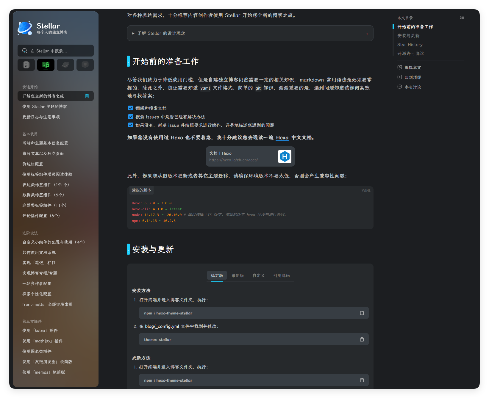 GitHub - xaoxuu/hexo-theme-stellar: 内置文档系统的简约商务风Hexo主题,支持大量的标签组件和动态数据组件。