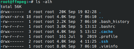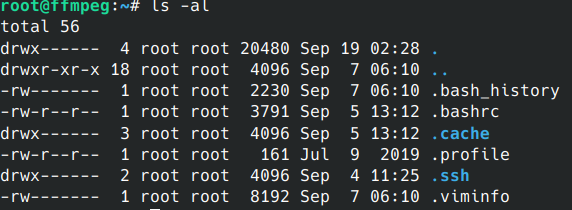 上面的命令虽然列出了所有文件的名字,但是我们不能得到文件除了名字以外的其他信息,我们可以使用ls -al来获取所有文件的信息: