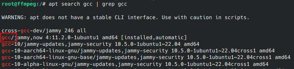 apt提供从索引中检索软件包的功能,比如我需要查找gcc软件包,我们可以运行此命令来查找: