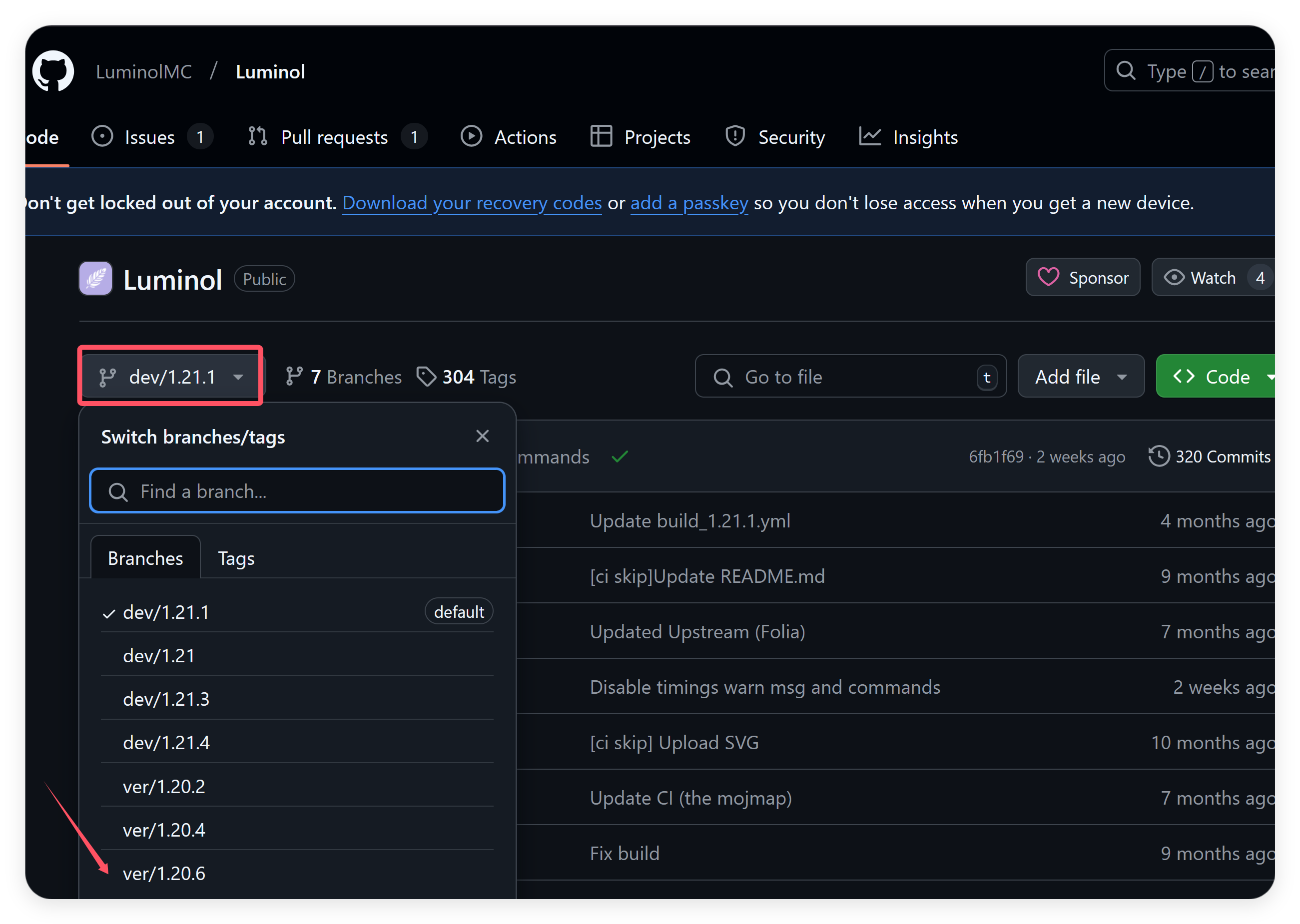选择想要的游戏版本对应的分支